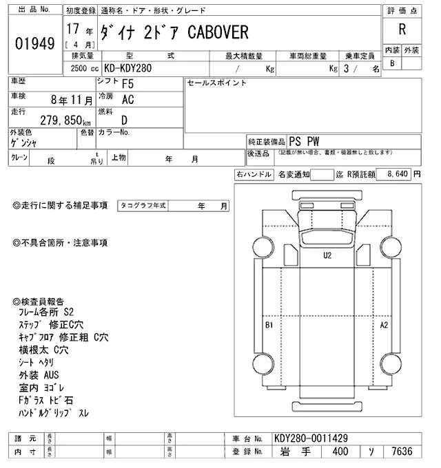 Toyota DYNA с аукциона Японии ARAI Oyama VT лот № 1949