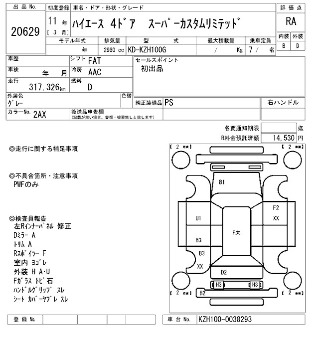 Toyota HIACE с аукциона Японии ARAI Oyama VT лот № 20629