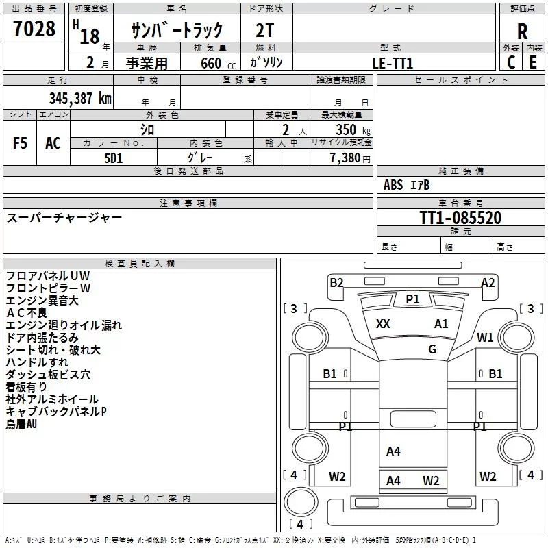 Subaru SAMBAR с аукциона Японии TAA Hyogo лот № 7028