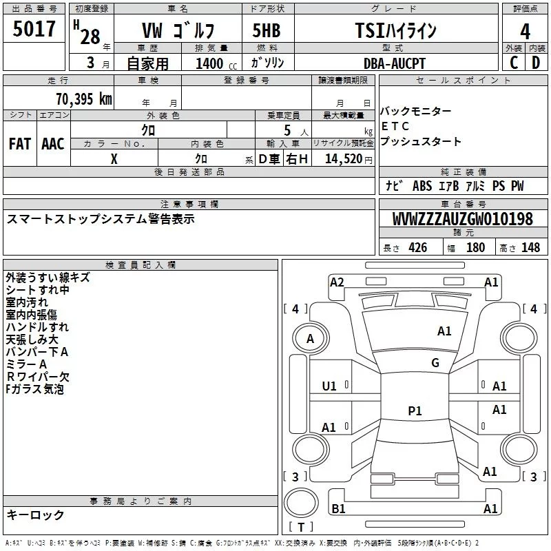 Volkswagen Golf с аукциона Японии TAA Hyogo лот № 5017