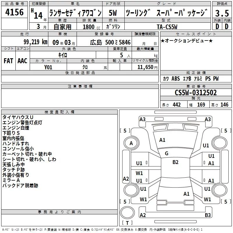 Mitsubishi LANCER с аукциона Японии TAA Hyogo лот № 4156