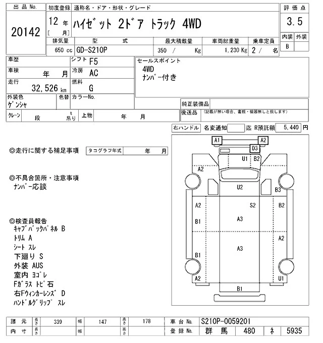 Daihatsu HIJET TRUCK с аукциона Японии ARAI Oyama VT лот № 20142