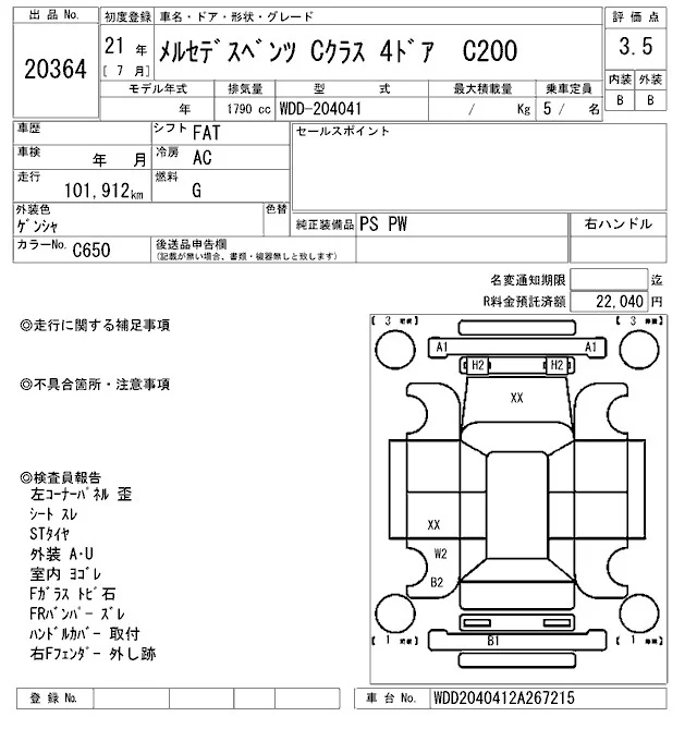 Mercedes-Benz C CLASS с аукциона Японии ARAI Oyama VT лот № 20364