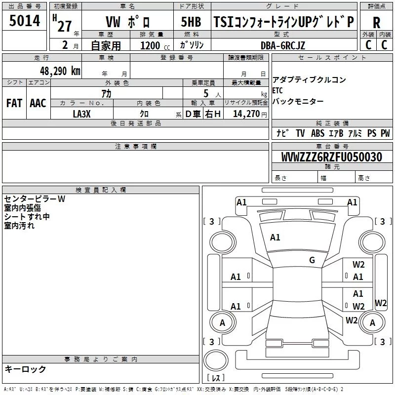 Volkswagen Polo с аукциона Японии TAA Yokohama лот № 5014