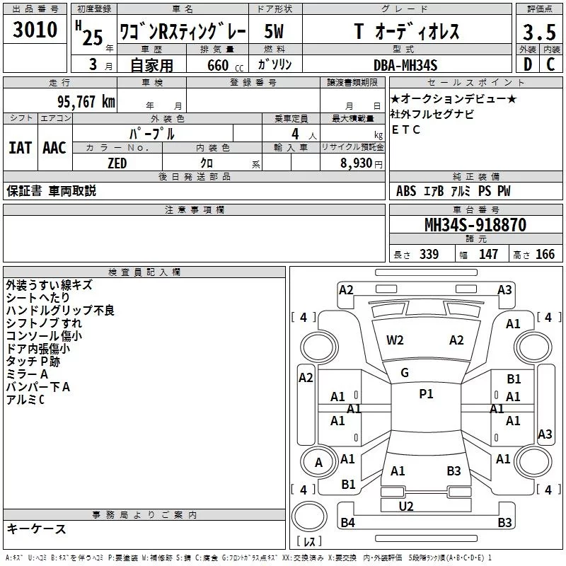 Suzuki WAGON R с аукциона Японии TAA Yokohama лот № 3010
