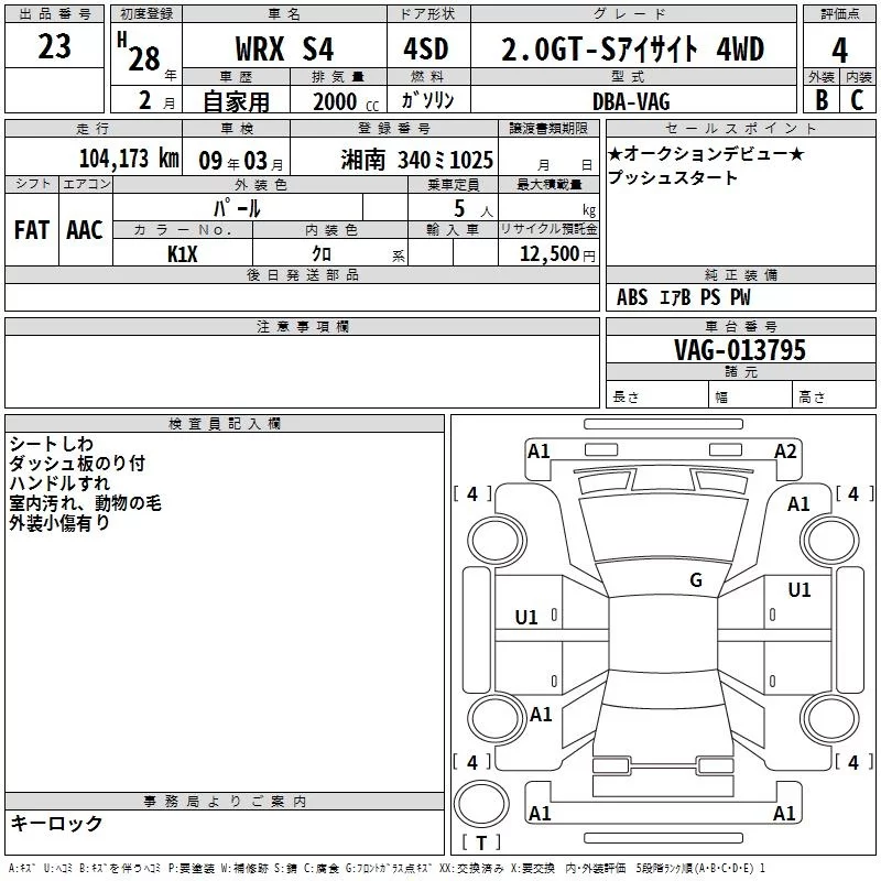 Subaru WRX с аукциона Японии TAA Yokohama лот № 23