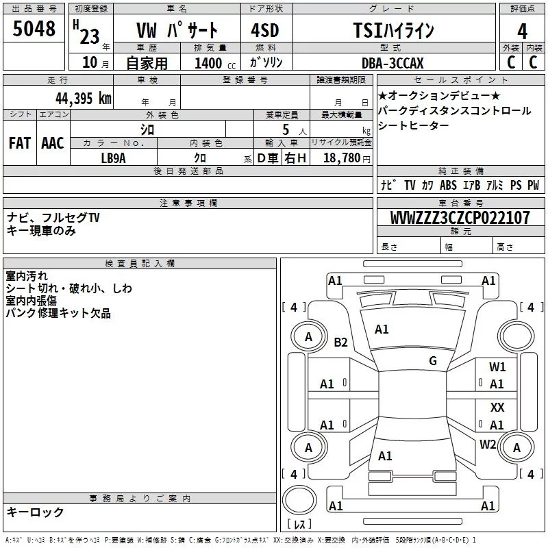 Volkswagen Passat с аукциона Японии TAA Yokohama лот № 5048
