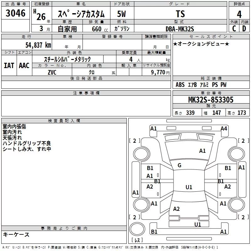 Suzuki SPACIA с аукциона Японии TAA Yokohama лот № 3046