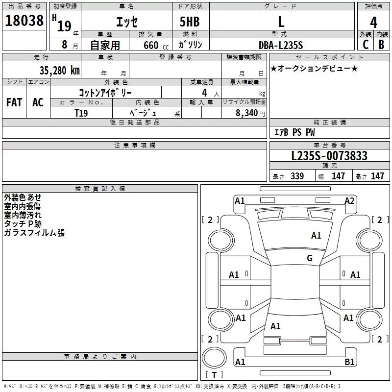 Daihatsu Esse с аукциона Японии TAA Yokohama лот № 18038