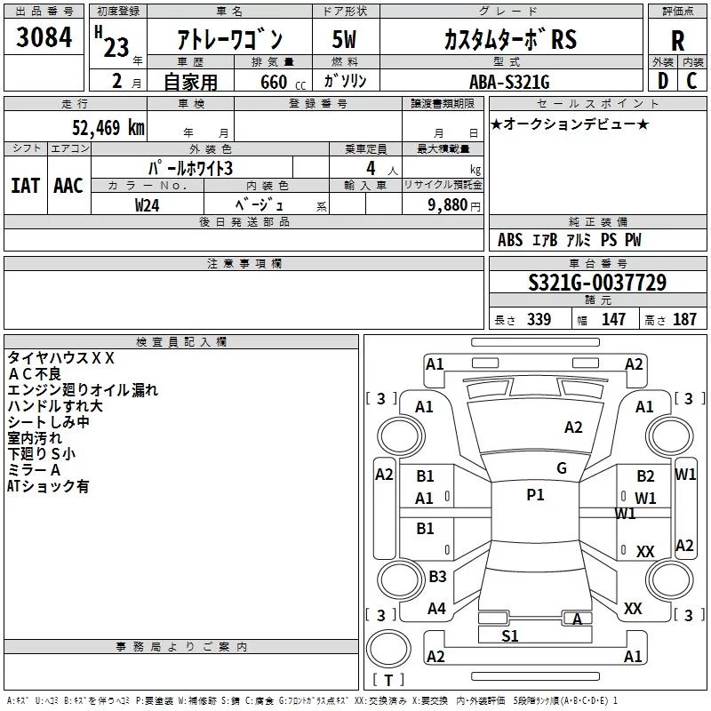 Daihatsu Atrai Wagon с аукциона Японии TAA Yokohama лот № 3084