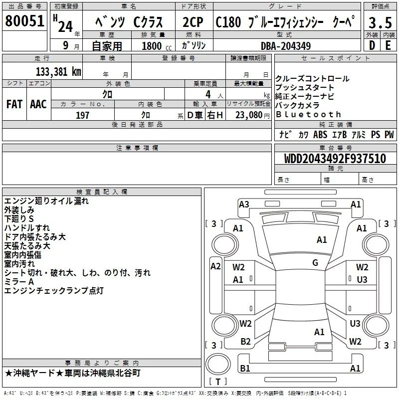 Mercedes-Benz C CLASS с аукциона Японии TAA Yokohama лот № 80051