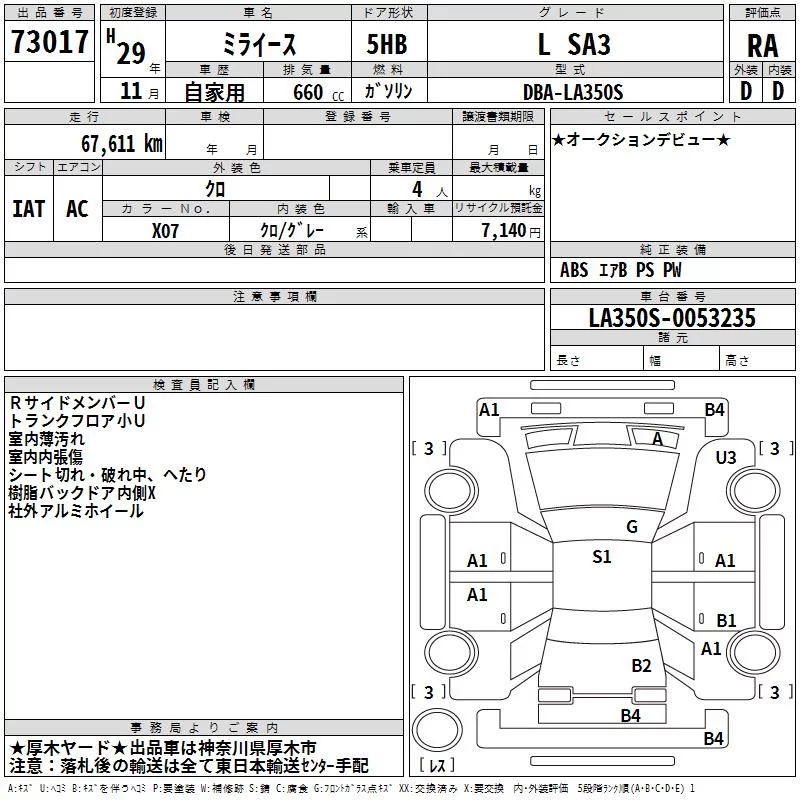 Daihatsu MIRA E S с аукциона Японии TAA Yokohama лот № 73017