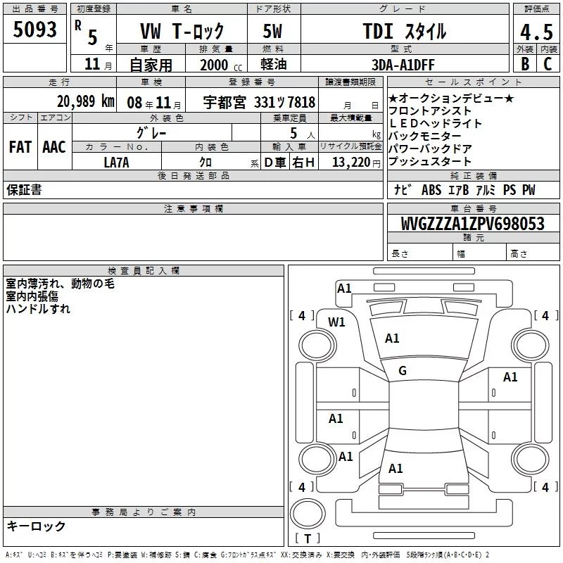 Volkswagen T-ROC с аукциона Японии TAA Yokohama лот № 5093