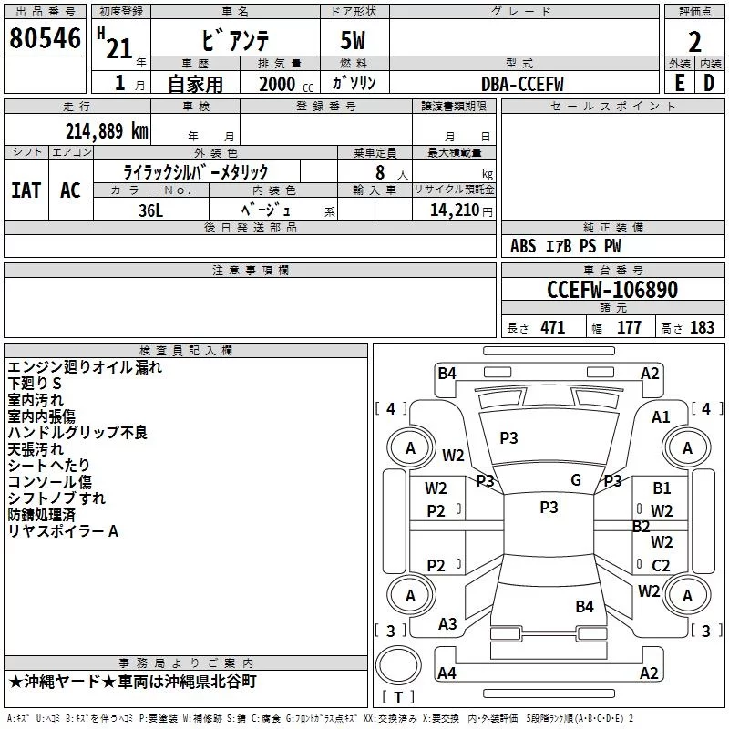 Mazda BIANTE с аукциона Японии TAA Yokohama лот № 80546