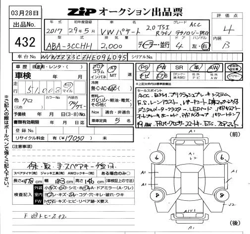 Volkswagen Passat с аукциона Японии ZIP Tokyo лот № 432