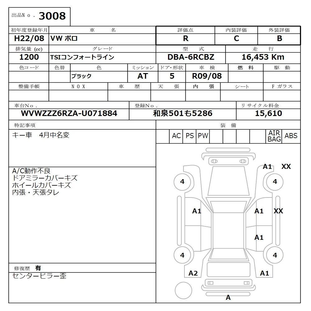 Volkswagen Polo с аукциона Японии NISSAN Osaka лот № 3008