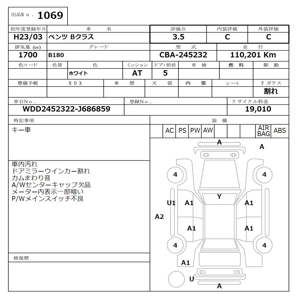Mercedes-Benz B CLASS с аукциона Японии NISSAN Osaka лот № 1069