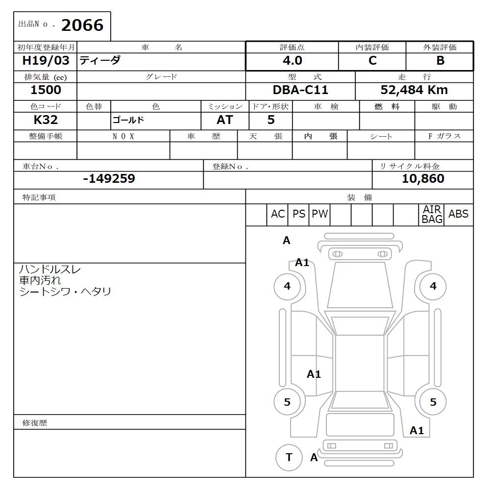 Nissan TIIDA с аукциона Японии NISSAN Osaka лот № 2066