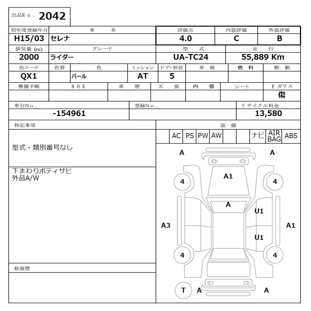 Nissan SERENA с аукциона Японии NISSAN Osaka лот № 2042