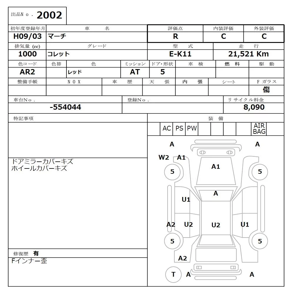 Nissan MARCH с аукциона Японии NISSAN Osaka лот № 2002