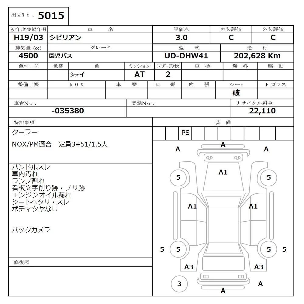 Nissan CIVILIAN с аукциона Японии NISSAN Osaka лот № 5015
