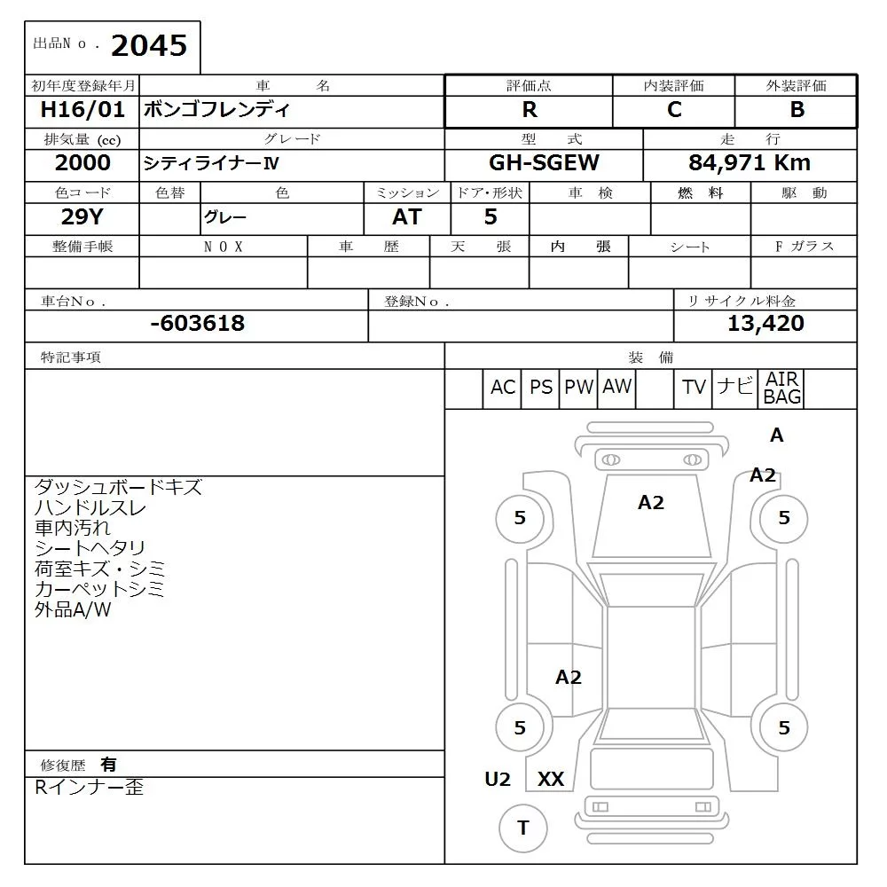 Mazda BONGO FRIENDEE с аукциона Японии NISSAN Osaka лот № 2045