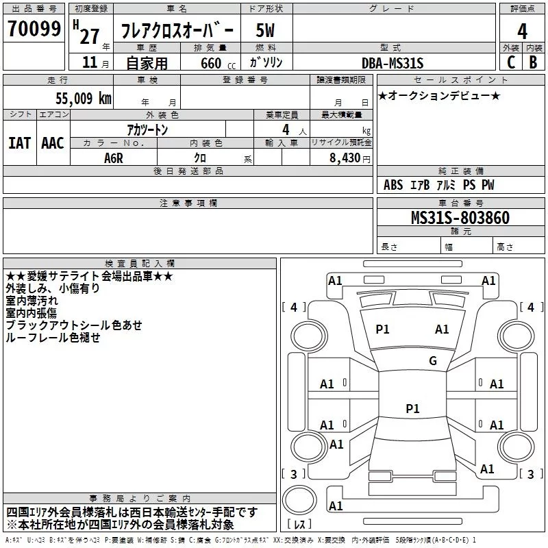 Mazda FLAIR CROSSOVER с аукциона Японии TAA Shikoku лот № 70099