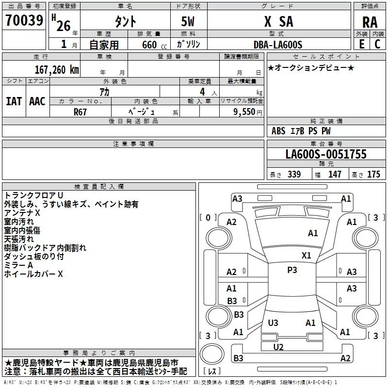 Daihatsu TANTO с аукциона Японии TAA Minami Kyushu лот № 70039