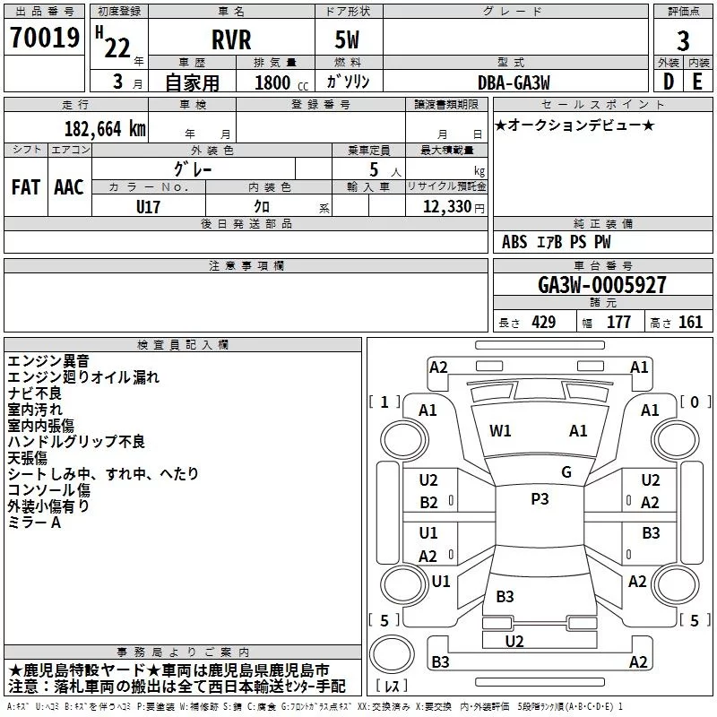 Mitsubishi RVR с аукциона Японии TAA Minami Kyushu лот № 70019