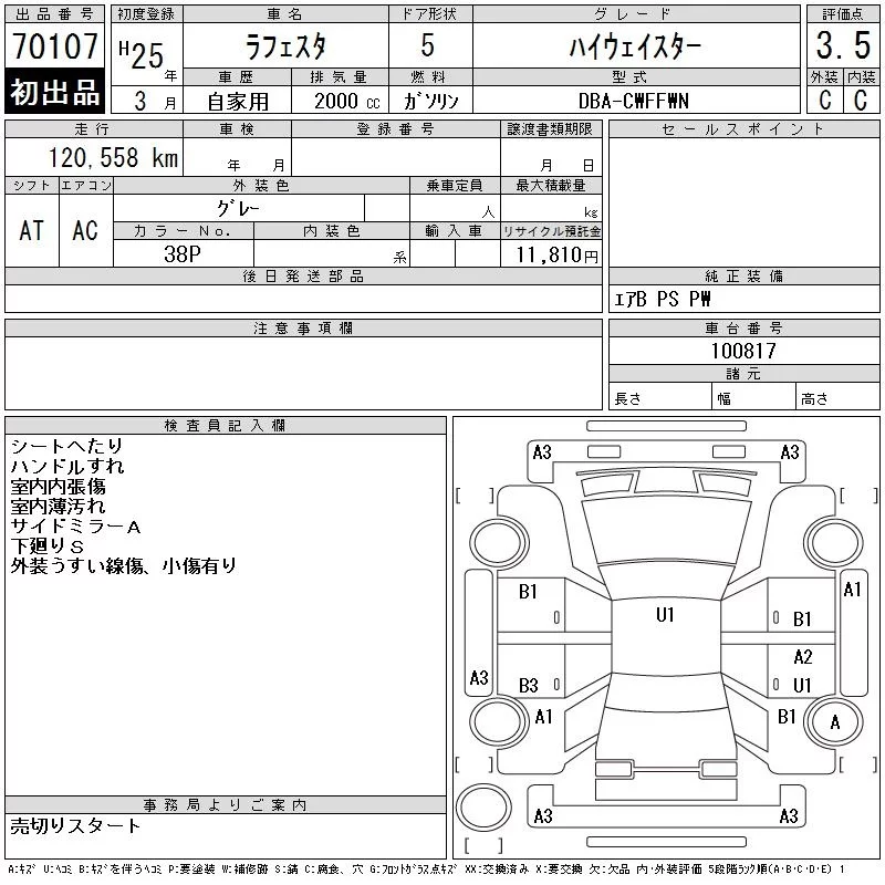 Nissan LAFESTA с аукциона Японии CAA Gifu лот № 70107