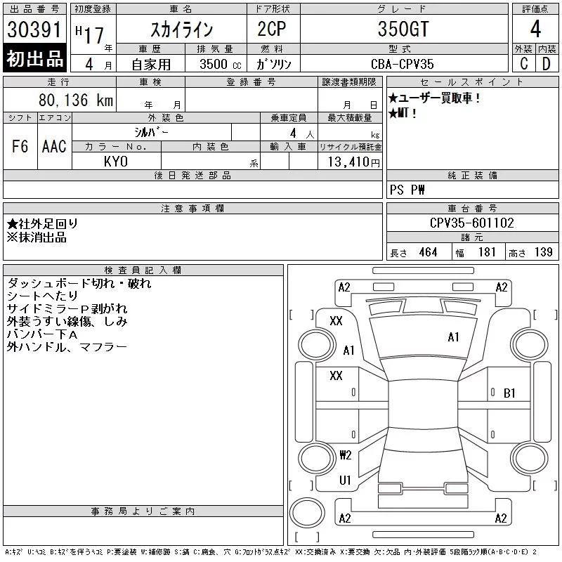 Nissan SKYLINE с аукциона Японии CAA Gifu лот № 30391