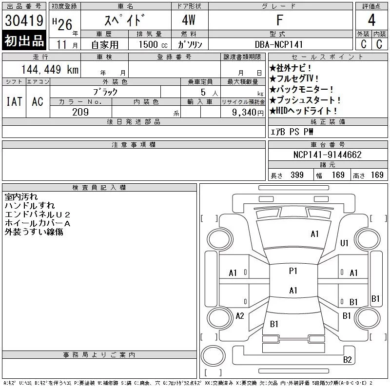 Toyota SPADE с аукциона Японии CAA Gifu лот № 30419