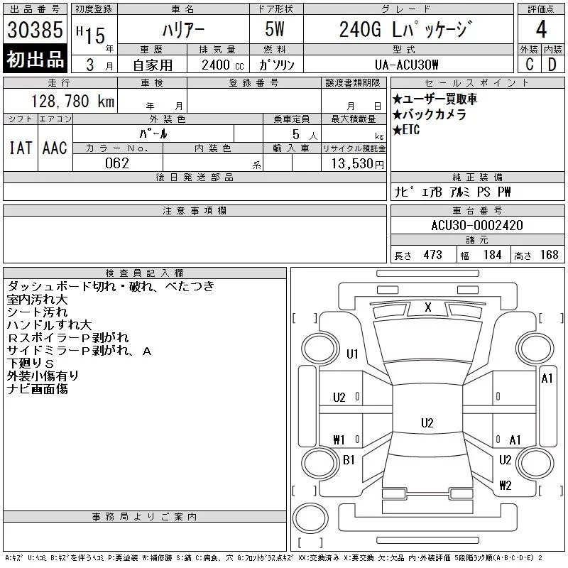 Toyota HARRIER с аукциона Японии CAA Gifu лот № 30385