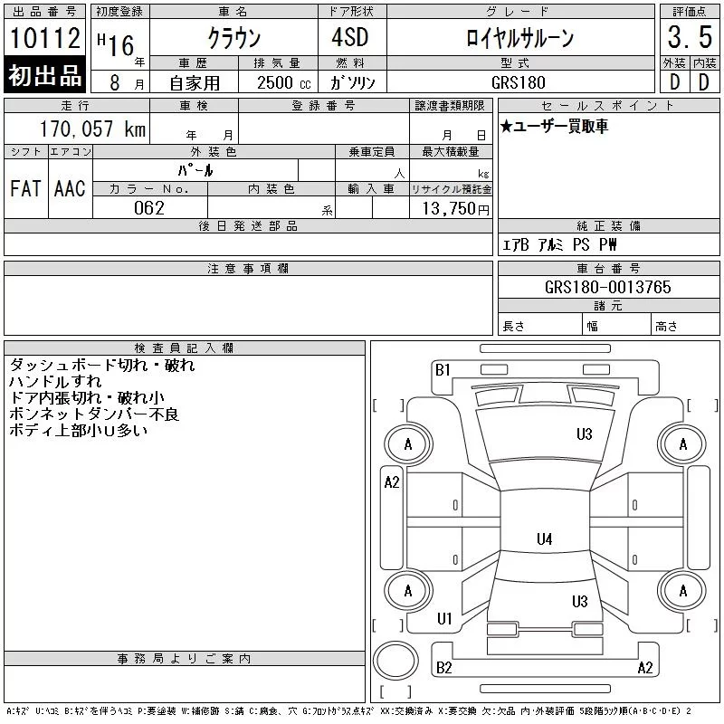 Toyota CROWN с аукциона Японии CAA Gifu лот № 10112