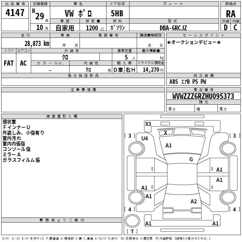 Volkswagen Polo с аукциона Японии TAA Kyushu лот № 4147