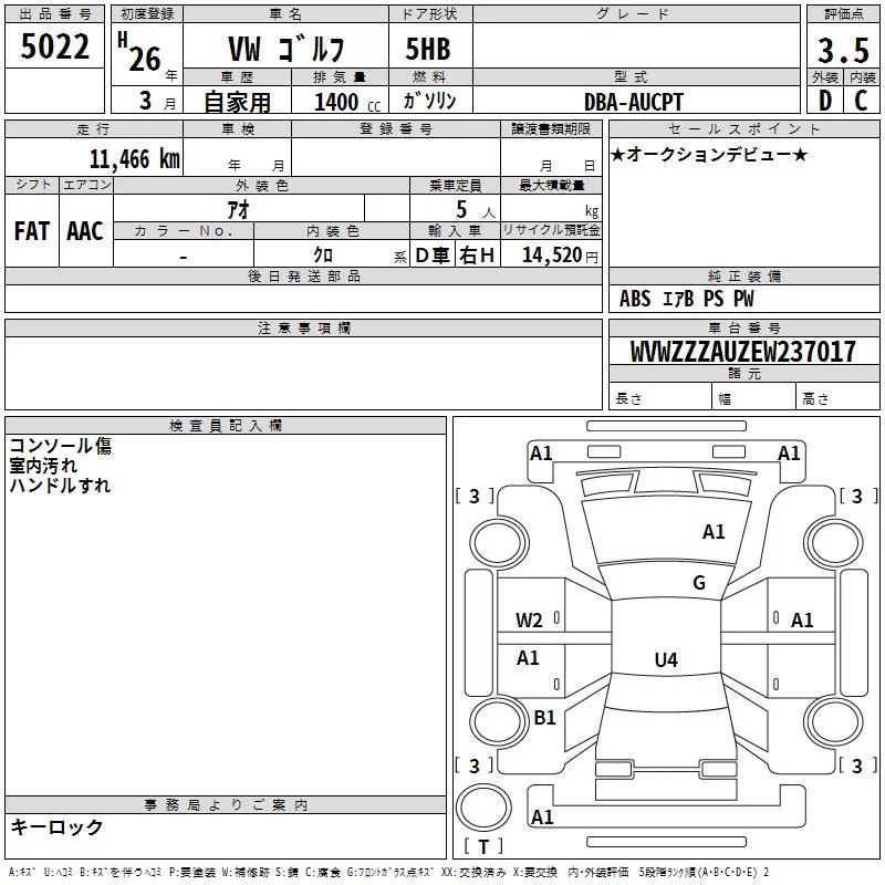 Volkswagen Golf с аукциона Японии TAA Kyushu лот № 5022