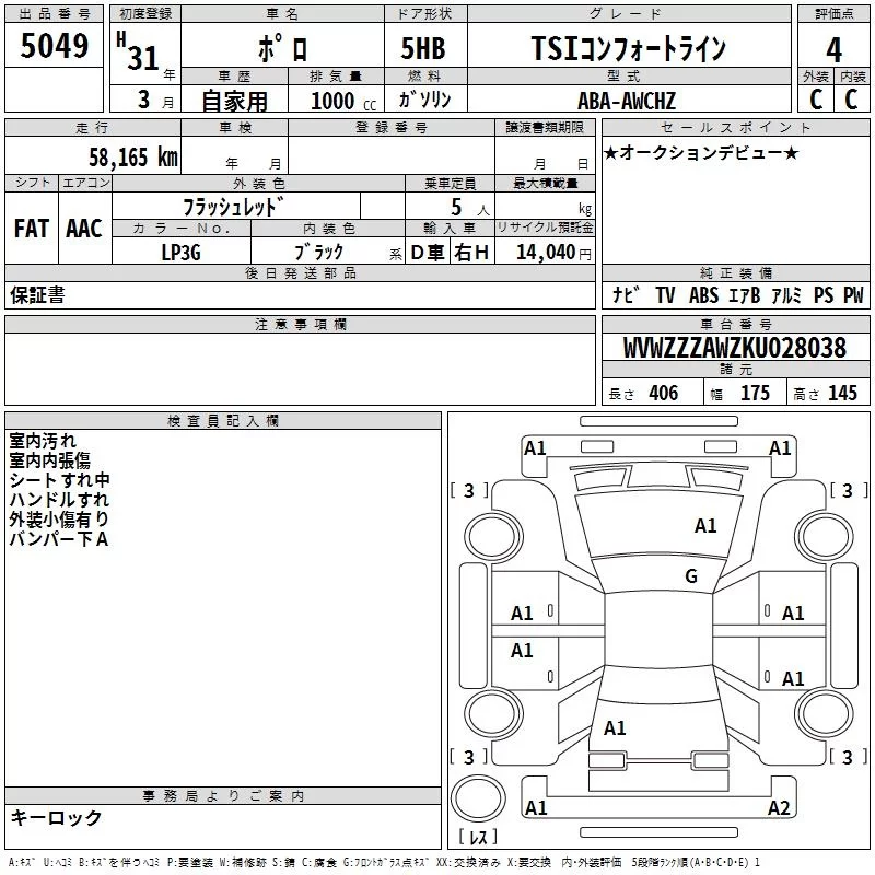 Volkswagen Polo с аукциона Японии TAA Kyushu лот № 5049