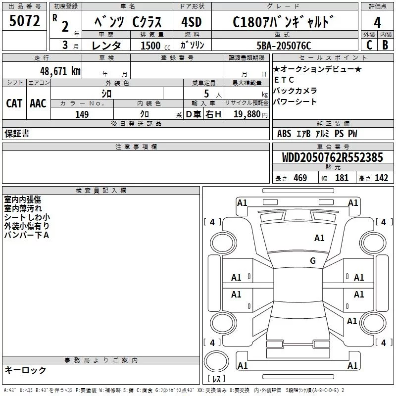 Mercedes-Benz C CLASS с аукциона Японии TAA Kyushu лот № 5072