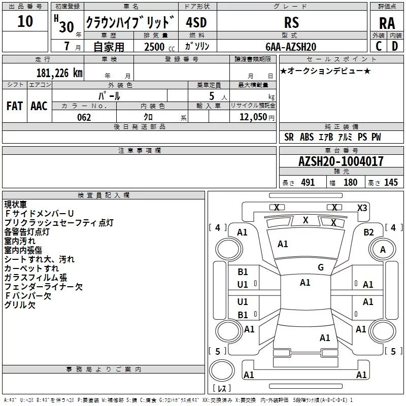 Toyota CROWN с аукциона Японии TAA Minami Kyushu лот № 10