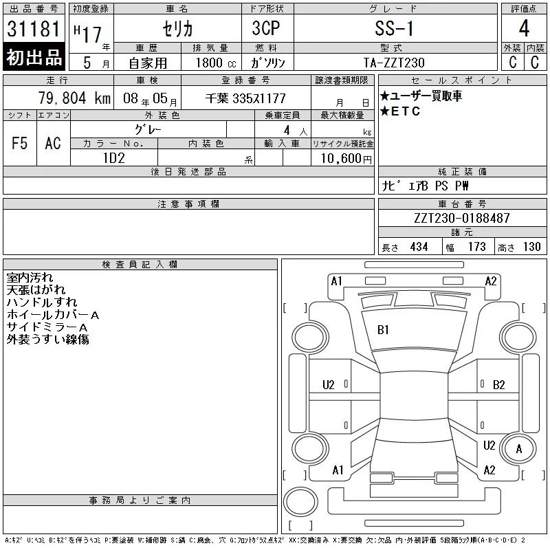 Toyota CELICA с аукциона Японии CAA Tokyo лот № 31181