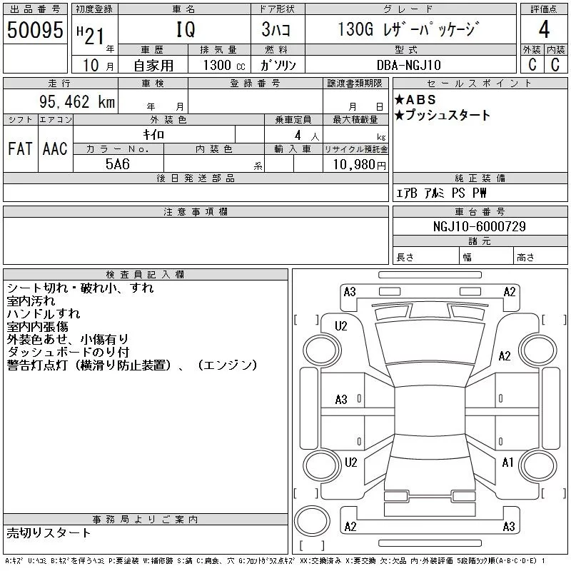 Toyota IQ с аукциона Японии CAA Tokyo лот № 50095