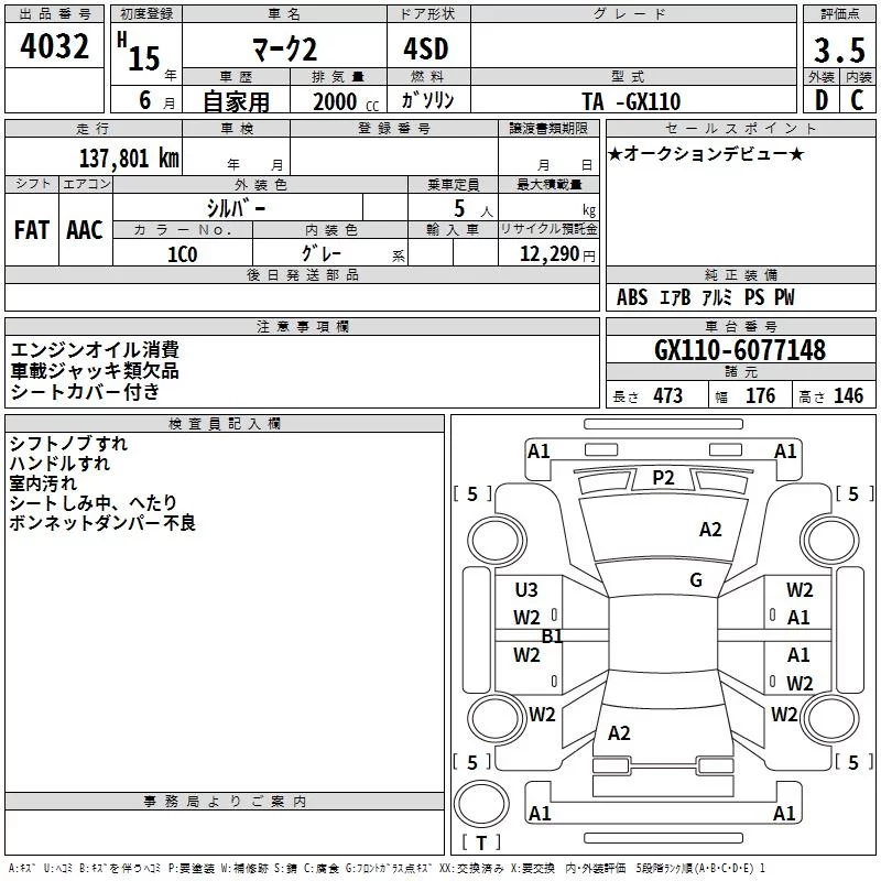 Toyota MARK II с аукциона Японии TAA Minami Kyushu лот № 4032