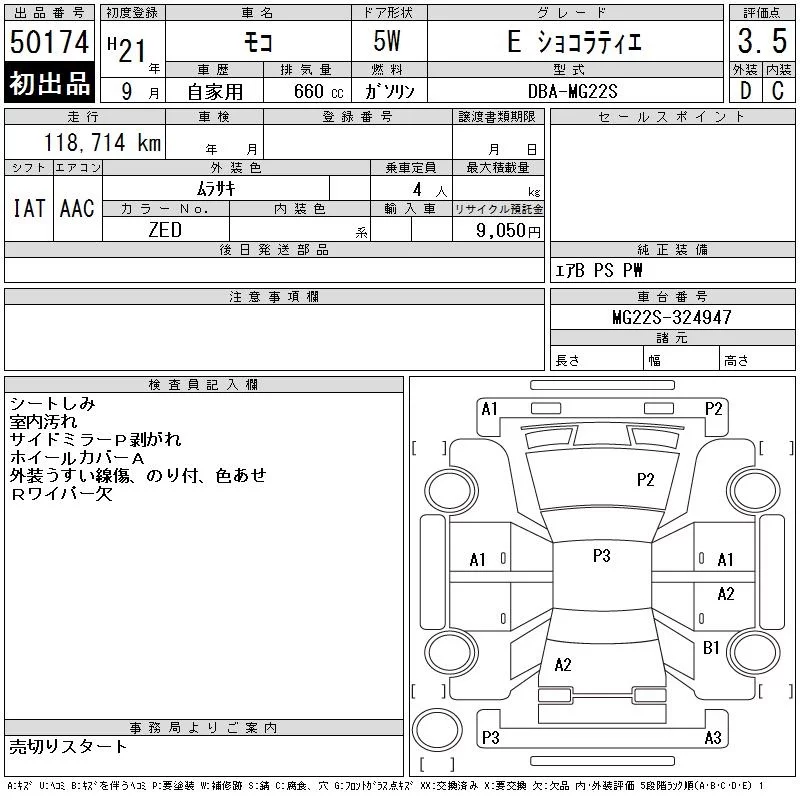 Nissan MOCO с аукциона Японии CAA Tokyo лот № 50174