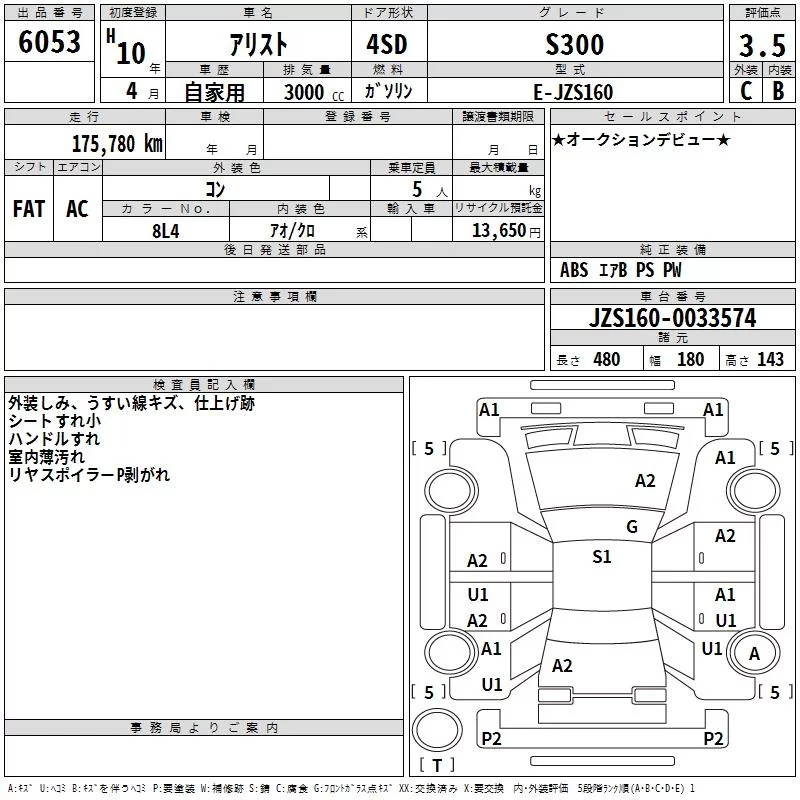 Toyota ARISTO с аукциона Японии TAA Minami Kyushu лот № 6053