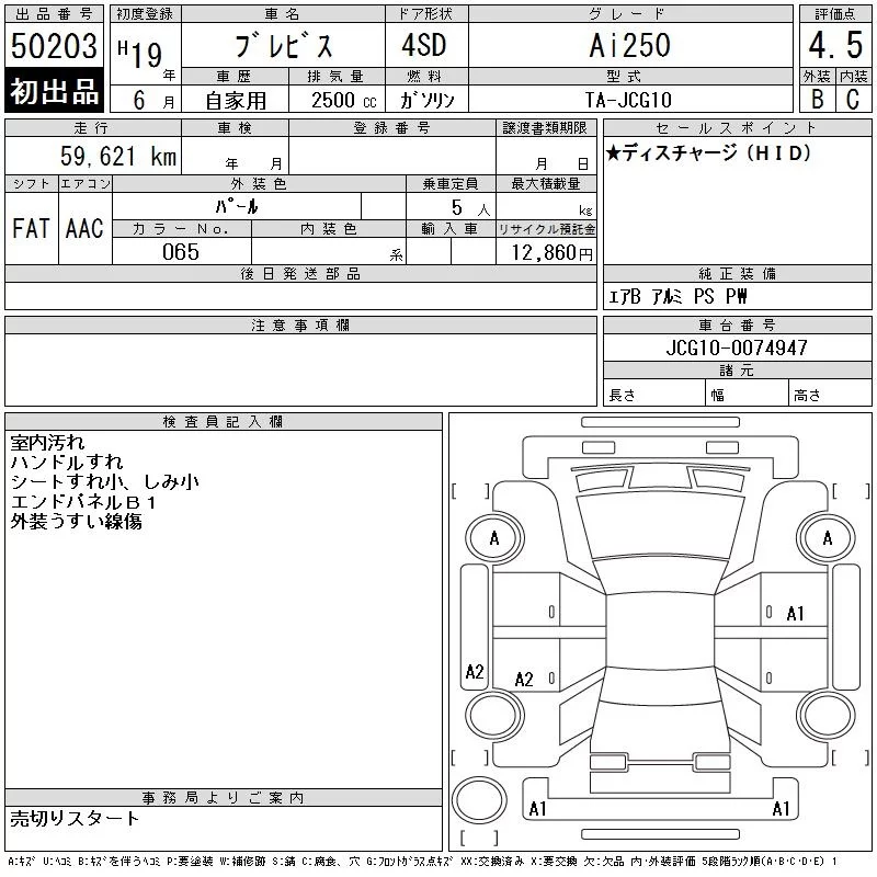 Toyota BREVIS с аукциона Японии CAA Tokyo лот № 50203