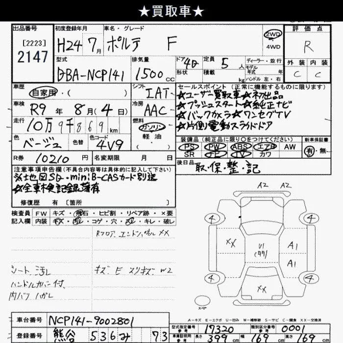 Toyota PORTE с аукциона Японии JU Saitama лот № 2147