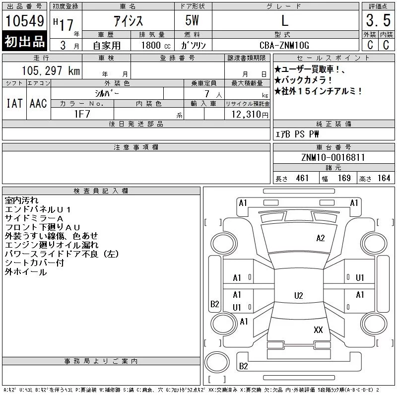 Toyota ISIS с аукциона Японии CAA Tokyo лот № 10549