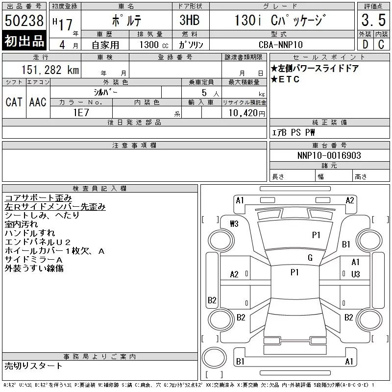 Toyota PORTE с аукциона Японии CAA Tokyo лот № 50238