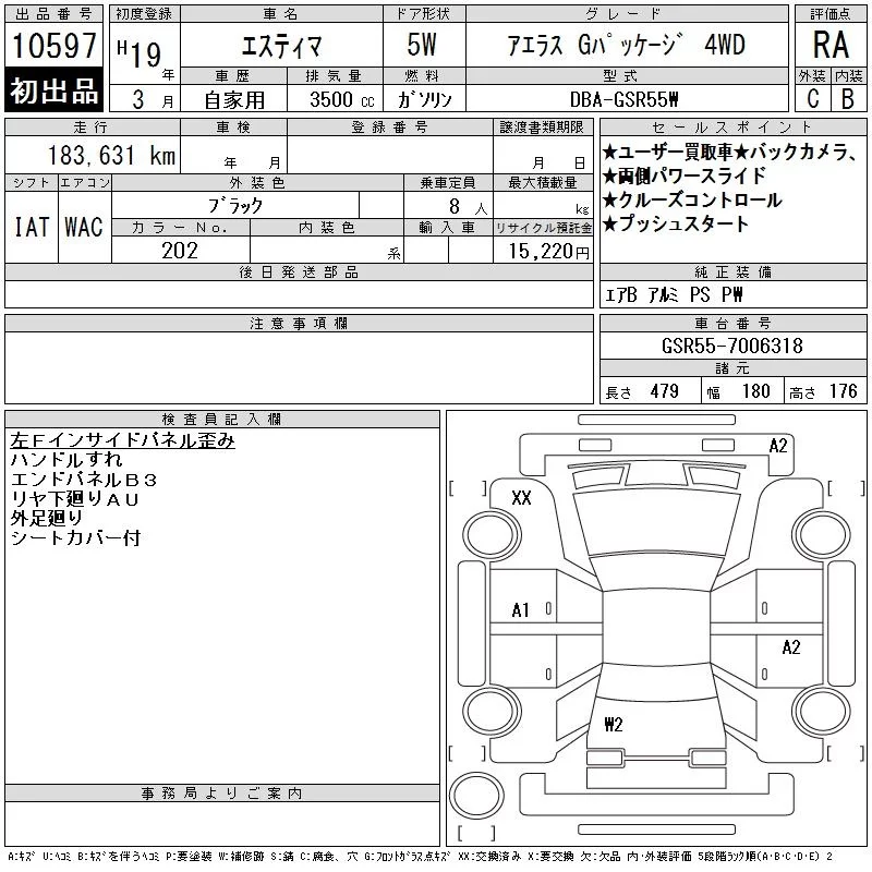Toyota ESTIMA с аукциона Японии CAA Tokyo лот № 10597