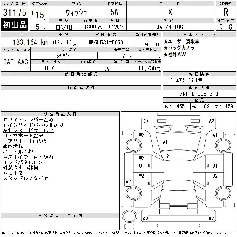 Toyota WISH с аукциона Японии CAA Tokyo лот № 31175